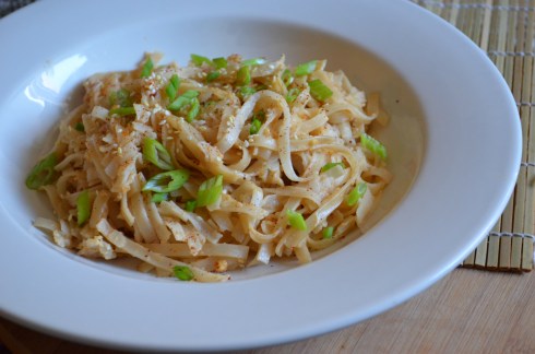 - Pour boiling water on rice noodles until they are covered completely. Meanwhile, combine first nine ingredients in a food processor. Blend until smooth. Add more water if needed.