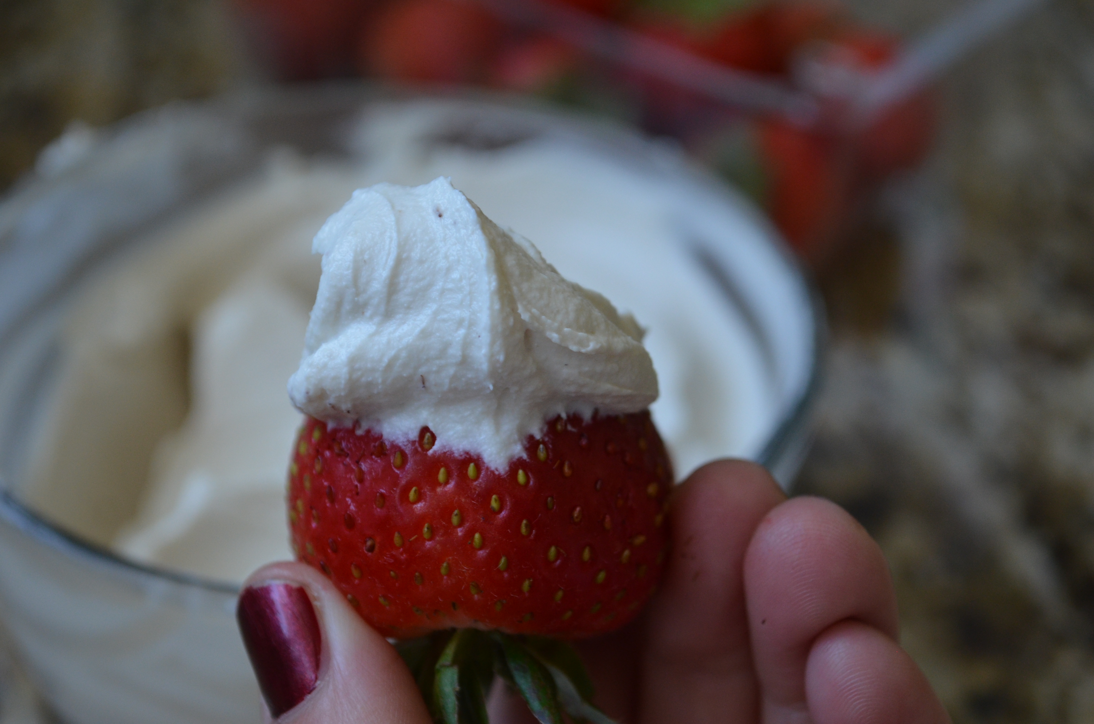 5. When the mixture looks a bit like mayonnaise and all the oil is used, begin spooning in your cashew cream. Continue to blend and add the cream until it’s fully blended.