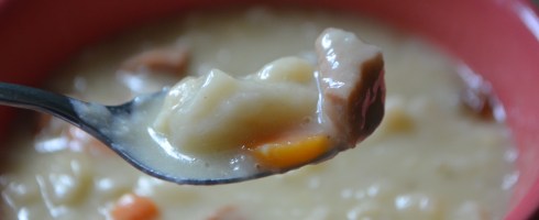 This recipe always reminds me of her and home. I grew up eating what we called “rabels” after Easter and other holidays, as it was a good way to use up leftovers. Upon further investigation on the Internet I found the proper term is rivel soup, but I will still always call it rabels. It’s funny how things get lost in translation and the words stick that way.