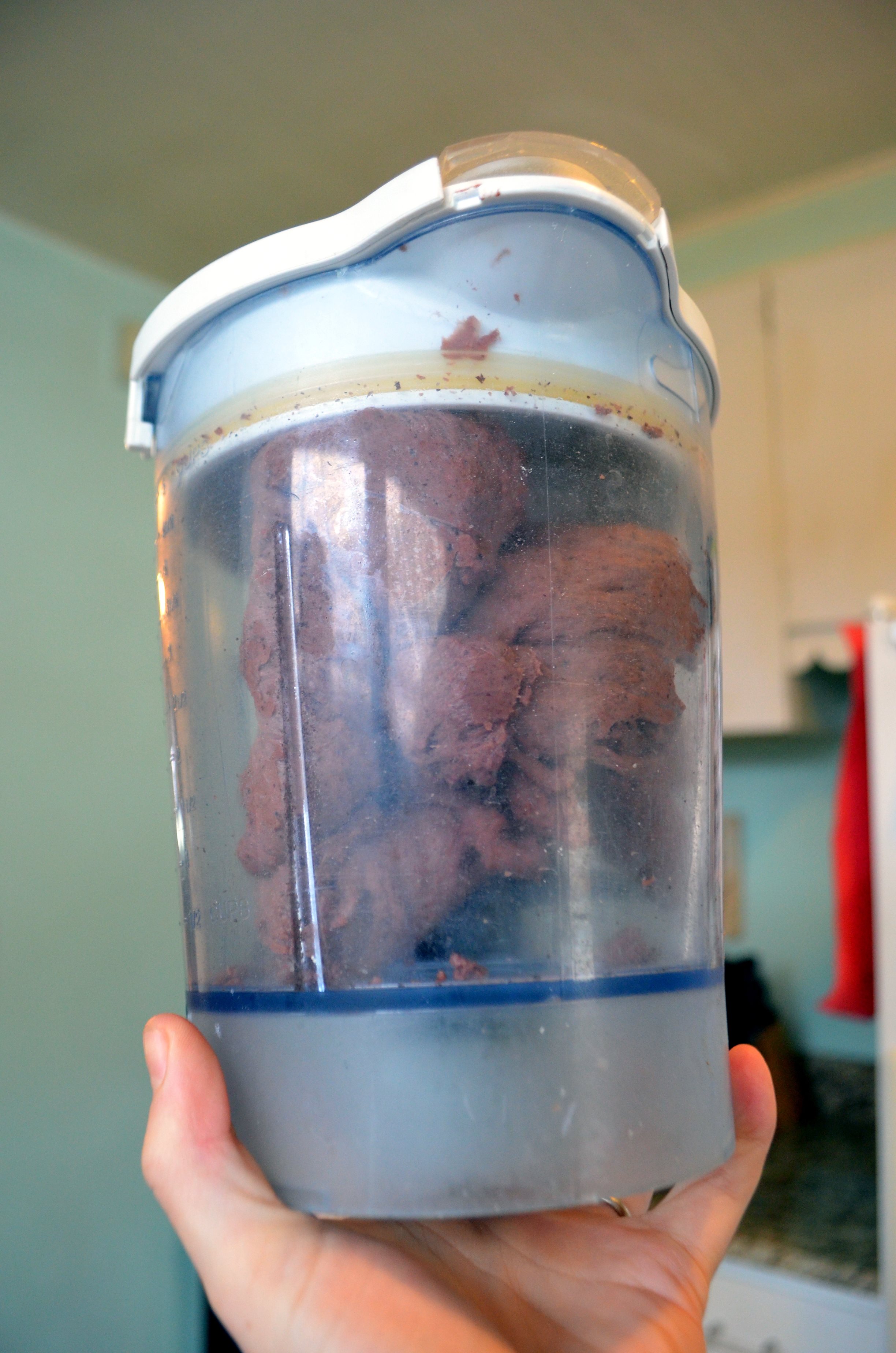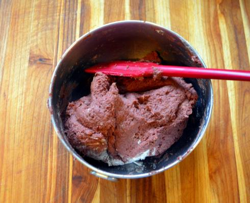 2. Blend all ingredients in a high speed blender until completely smooth, about 2 minutes. Weigh out vital wheat gluten while black bean and beet mixture is blending.