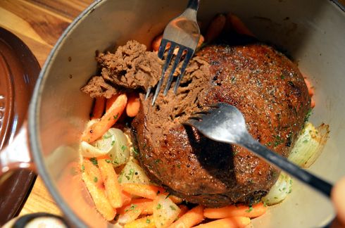12. Shred gently with two forks to serve. Suggested to enjoy with gravy and a dark beer.