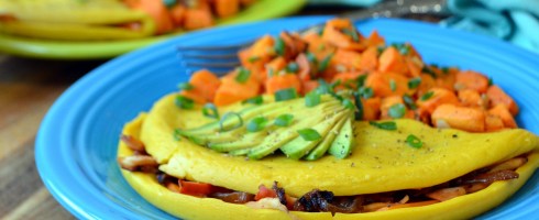 Every time I’m at a hotel, I wish there was a totally vegan breakfast buffet. Does this exist somewhere? My favorite thing is the folded omelets in the steamer trays. Something about the perfectly sized bits of yellow is so enticing. I’ve been spending a lot of time cooking up breakfasts on weekends and these omelets have become one of my favorites, since it’s so quick to throw together and very little clean up!