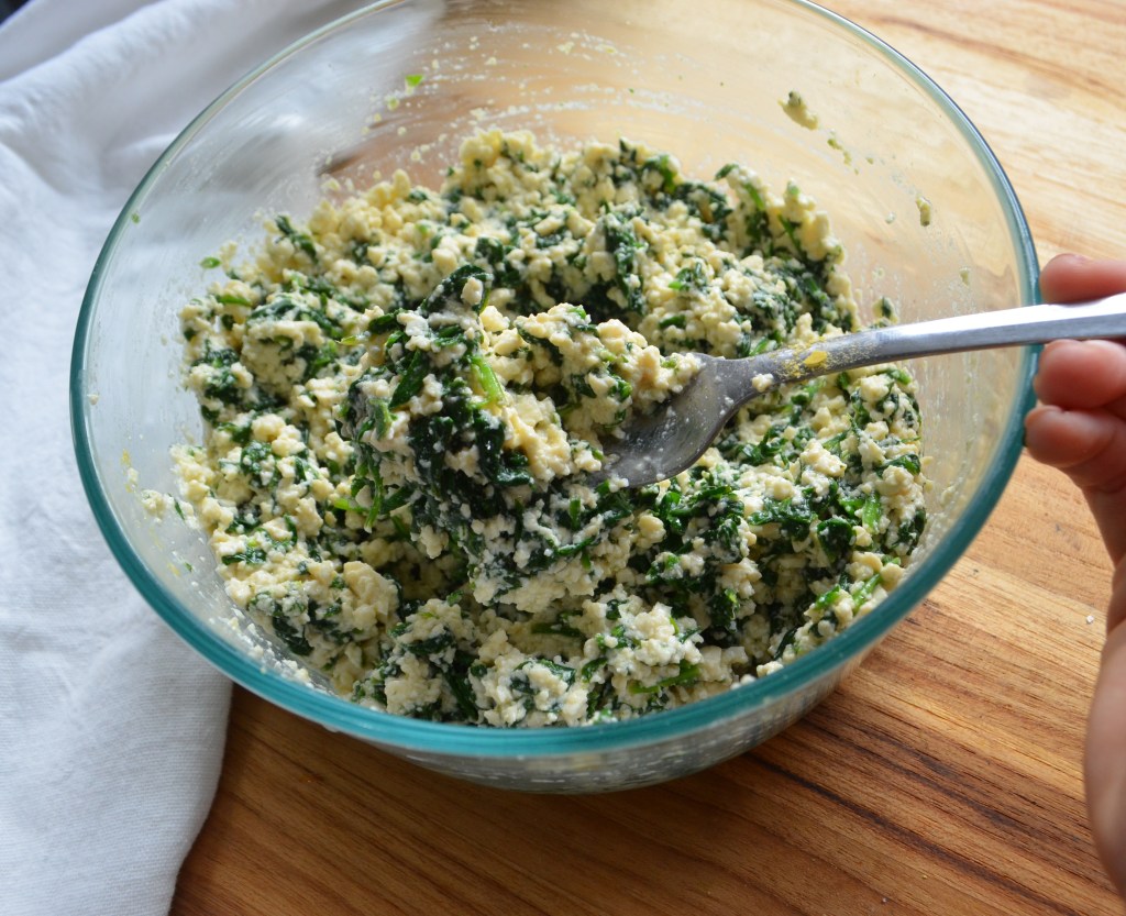 - 8 ounces fresh spinach, steamed, drained and chopped finely