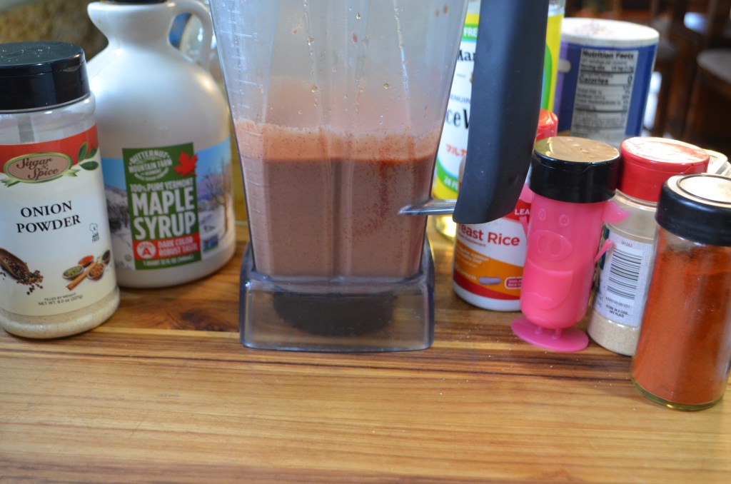 2. In a high speed blender, combine all of the ingredients for the ham layer, up until the vital wheat gluten. Blend until as smooth as possible, there may be a few flakes of kidney bean skin left, which won’t affect the overall texture.