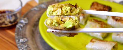 In between the holidays and the new year, I tend to get a bit restless and sluggish about cooking. It just seems like the days between Christmas and the New Year are made for lazing about and not really doing anything. But I am always in the mood for dumplings, especially when they are light and fresh and come in a crispy rice paper wrapper. With a bit of leftover veggies and a box of shelf stable Mori-Nu Silken Tofu from the pantry, these come together so quickly, and without the hassle of folding dumpling wrappers. The wrapping method for the rice paper dumplings is very similar to how you would fold a burrito, just pull all the sides in fold until you have a small packet to cook. Since the rice paper wrappers are already moistened before wrapping, there’s no need to add water into the pan to steam the dumplings, simply crisp and enjoy!